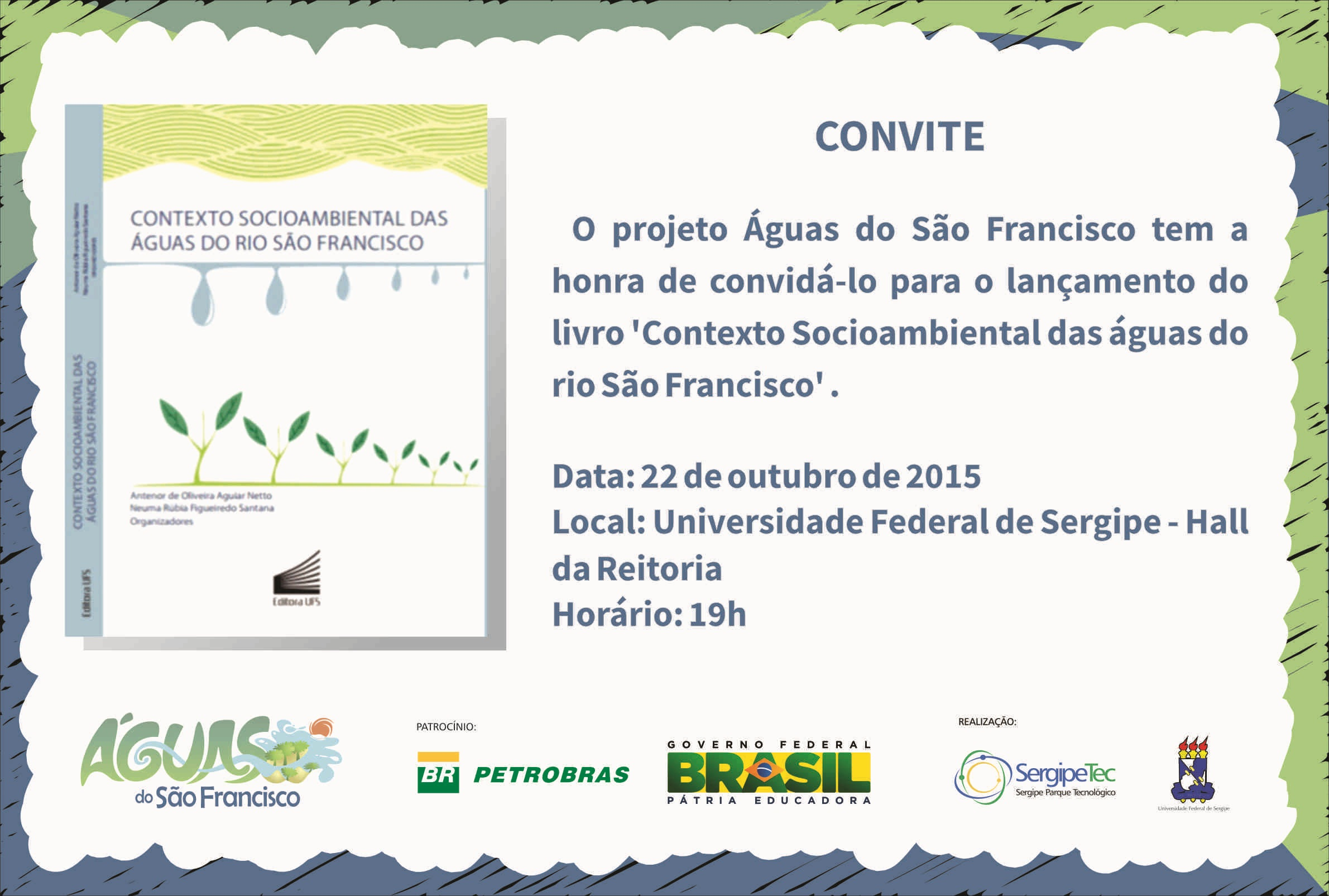 Dividida em dois dias, a programação do evento contará com o lançamento do livro ‘Contexto socioambiental das águas do rio São Francisco’, que reúne os relatos de pesquisas vividas de forma multidisciplinar pelos pesquisadores do Projeto Águas do São Francisco. Destaca-se que este livro tem um sentido e uma razão de compartilhamento, que, sem dúvida, é trazer ao leitor a grande importância ambiental que essa região exerce para a manutenção de alimentos, água e espaços naturais para o povo Sergipano.