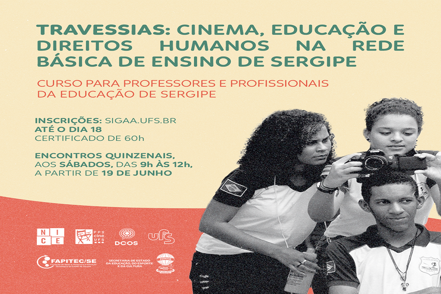 Docentes, gestores e agentes escolares da rede pública estadual de educação básica têm até o dia 18 de junho para realizarem inscrições no curso de extensão “Travessias: Cinema, Educação e Direitos Humanos na rede básica de ensino de Sergipe”. O curso é uma etapa do projeto “Travessias”, idealizado pelo Programa Interdisciplinar de Cinema e Educação (Nice), da Universidade Federal de Sergipe (UFS), especialmente para profissionais de instituições públicas estaduais. Os encontros iniciam no dia 19 de junho, serão quinzenais, aos sábados, das 09h às 12h, de modo remoto. A formação tem carga horária de 60h e o participante poderá receber certificado, desde que cumpra uma frequência de, pelo menos, 75%.